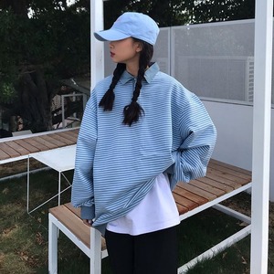 オータムウィンターブルーストライプカラーセーター ルーズブラックカジュアルパンツ 秋物 冬物 Brother_is_Style11053436507