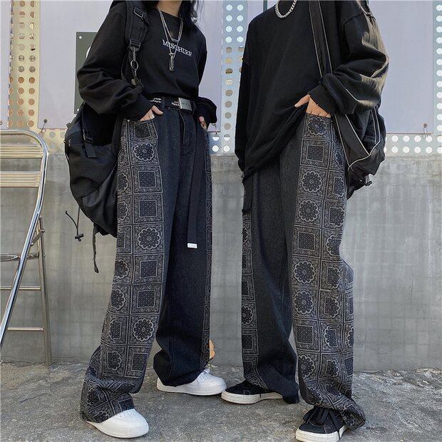 オータムウィンタースタンダードFlowerデザイン ルーズハイウェスト薄手ジーンズ レトロ 秋物 冬物 フラワーデザイン Brother_is_Style94415495178