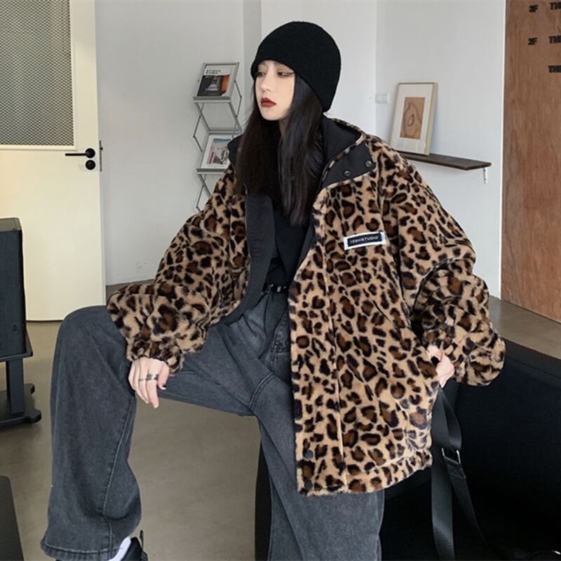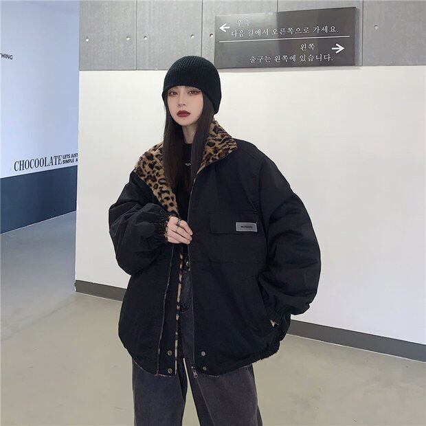 ジャケット ウィンターレオパードプリント柄ルーズウールコート コットン 冬物 Brother_is_Style15322367306