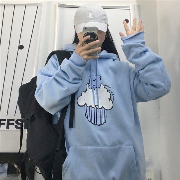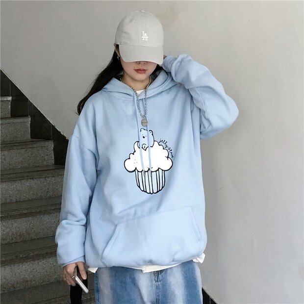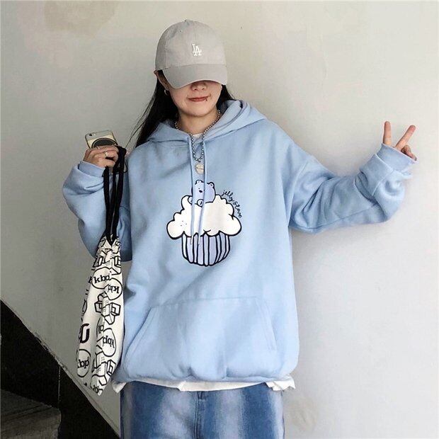 オータムウィンタースタイルフードトップス ルーズベルベットブルーセーター ジャケット かわいい 秋物 冬物 Brother_is_Style91515889466