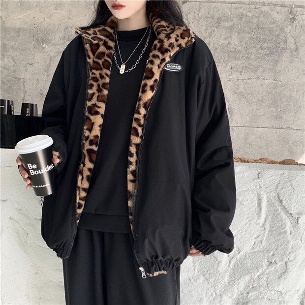 レオパードプリント柄ジャケット オータムウィンタールーズベルベットウールコート コットン 秋物 冬物 Brother_is_Style54000231705