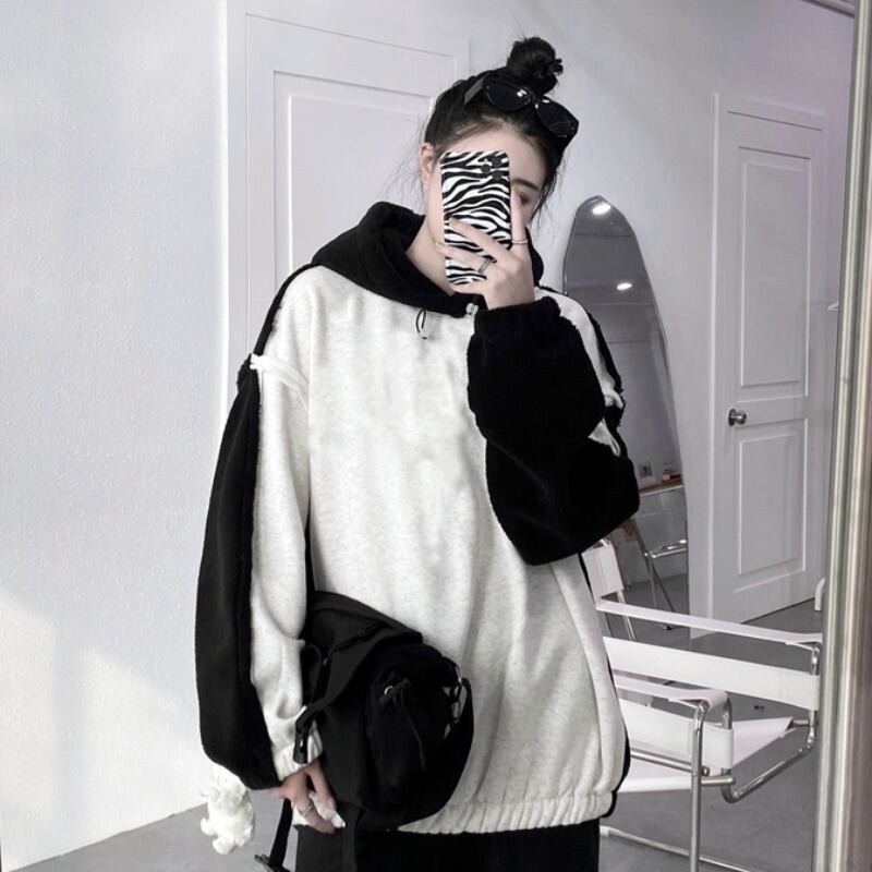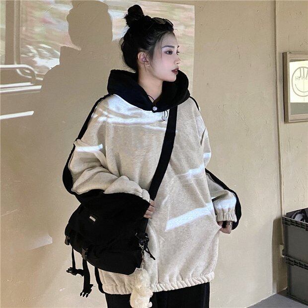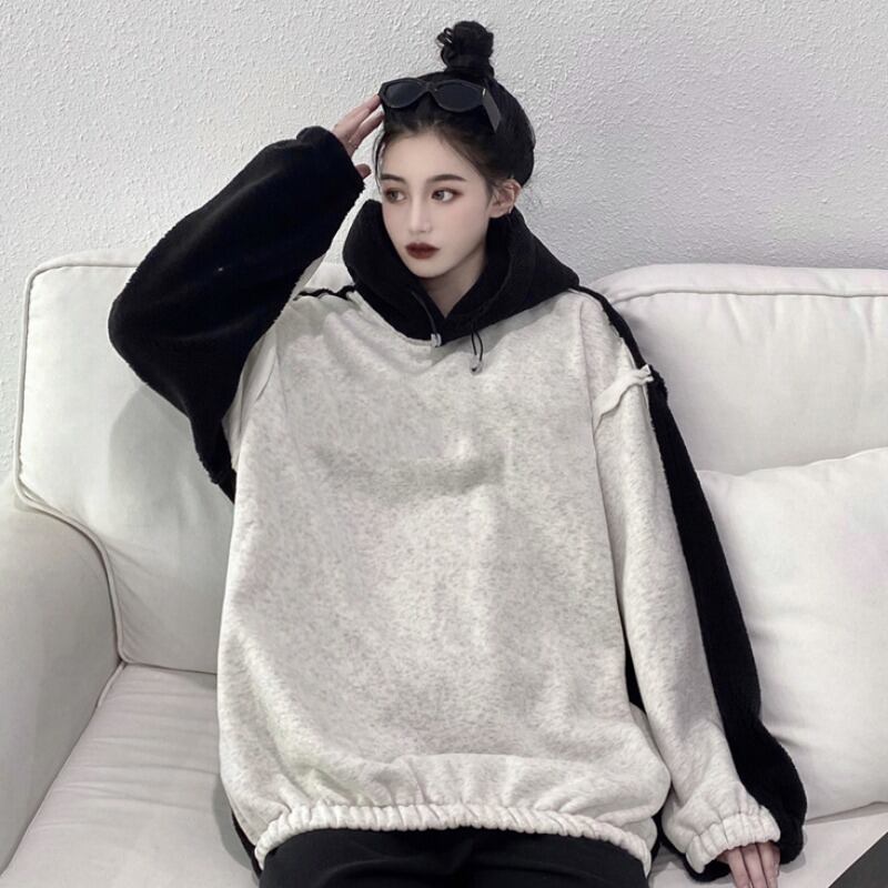スウェット シャツ オータムウィンタースタイルフードジャケット ルーズベルベット かわいい 秋物 冬物 ステッチ Brother_is_Style88813411761