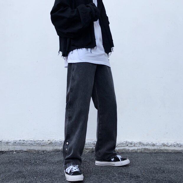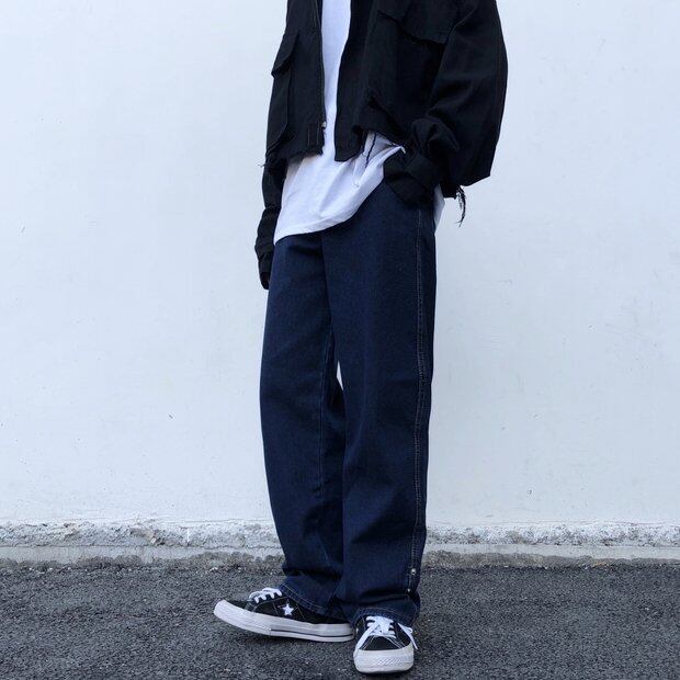 パンツ オータムウィンタースタンダードダークブルールーズ薄手ジーンズ レトロ 秋物 冬物 Brother_is_Style94094751300