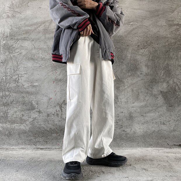 ホワイトパンツ オータムウィンターハイウェストウェストカジュアルルーズ薄手ワイドレッグ 秋物 冬物 ワイドパンツ Brother_is_Style79132095798
