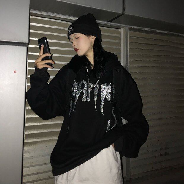 セーター レディースオータムウィンタースタイルフードトップス ルーズブラックベルベットジャケット 秋物 冬物 Brother_is_Style88489428174