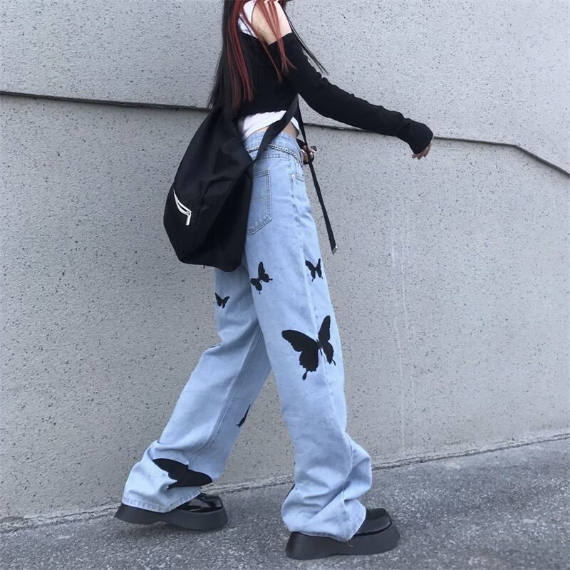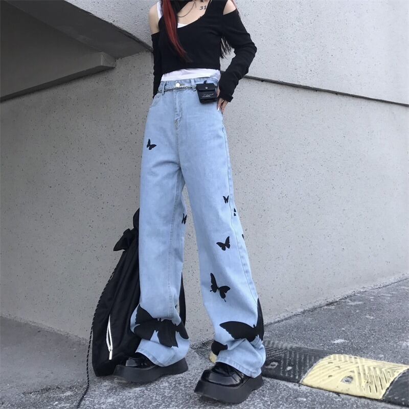 ジーンズ スプリングスタンダードButterflyデザイン パンツ ルーズハイウェストウェスト薄手ワイドレッグ レトロ 春物 ワイドパンツ Brother_is_Style92552633467