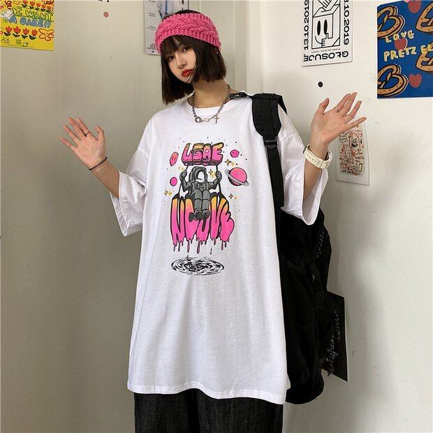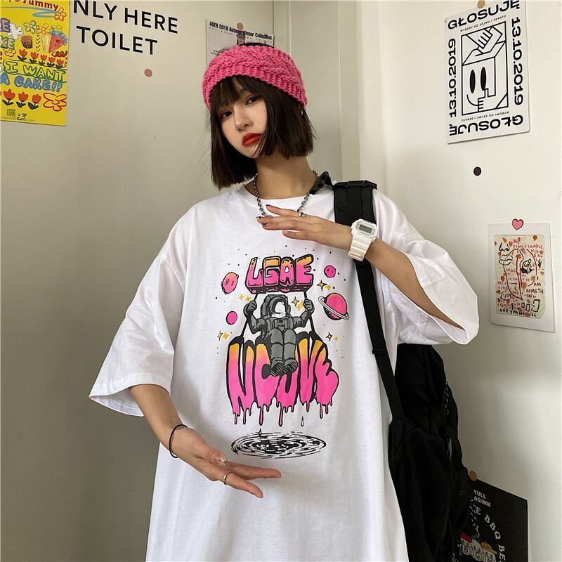 スプリングサマースタイルホワイトトップス ルーズ半袖スリーブTシャツ ショート ハーフスリーブ かわいい 春物 夏物 Brother_is_Style76864762009