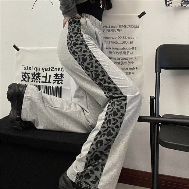 パンツ スプリングスタンダードレオパードルーズブラックカジュアル レトロ 春物 ステッチ Brother_is_Style69282770625