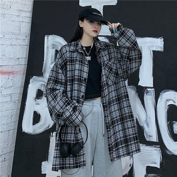 シャツ レディーススプリングスタンダード格子柄ルーズカジュアルジャケット ロング レトロ 春物 Brother_is_Style901312150