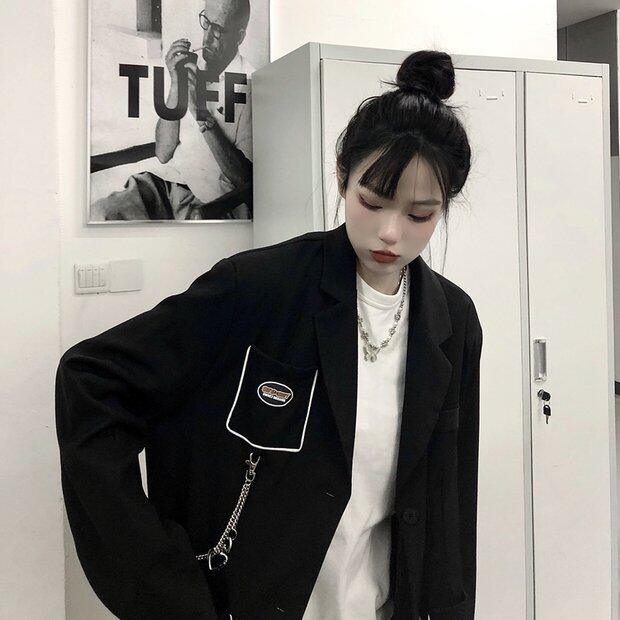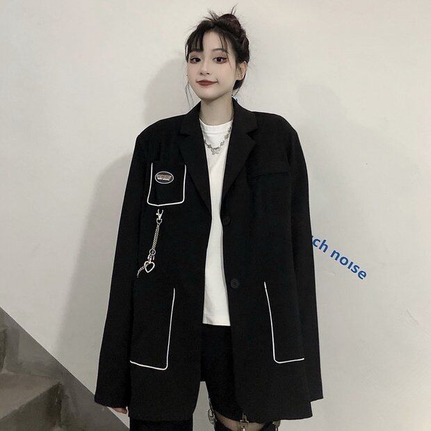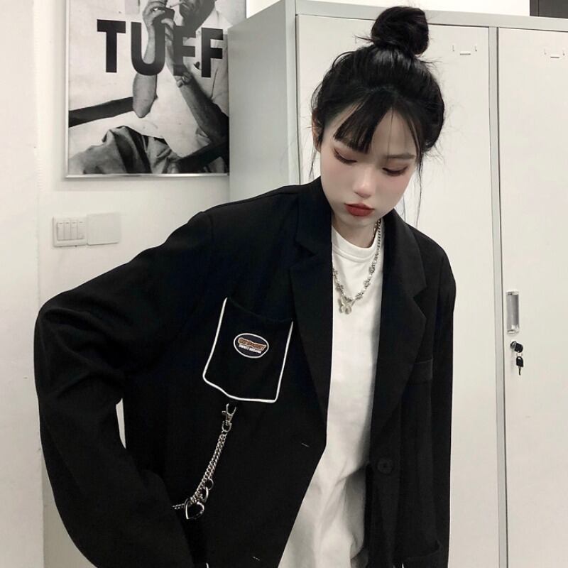 スプリングスタイルジャケット ルーズブラックトップス かわいい 春物 Brother_is_Style76376143312