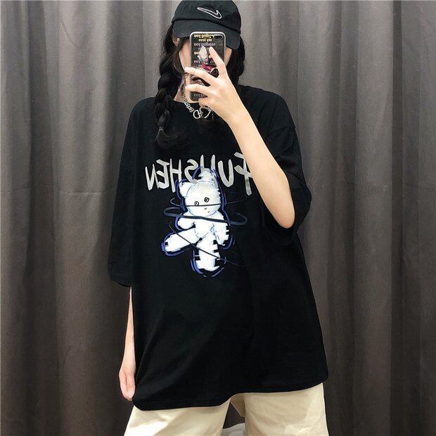 スプリングサマースタイルブラックTシャツ シャツ ルーズ かわいい 春物 夏物 Brother_is_Style67070486664