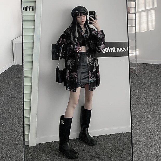 スプリングブラックButterflyデザイン シャツ トップス ルーズジャケット かわいい 春物 Brother_is_Style10678194904