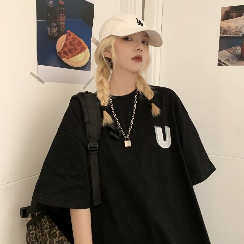 スプリングサマースタンダードTシャツ ルーズブラックトップス レトロ 春物 夏物 Brother_is_Style20974772503