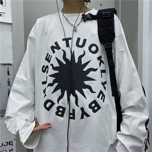 スプリングスタイルホワイトトップス ルーズTシャツ ロング かわいい 春物 Brother_is_Style88713004922