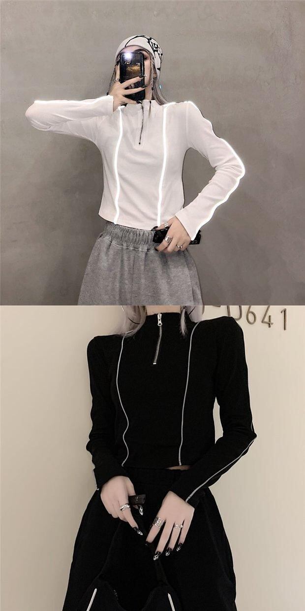 スプリングオータムレッドトップス スリムショートブラックシャツ Tシャツ 春物 秋物 Brother_is_Style26584036463