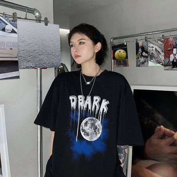 スプリングサマーダークTシャツ ルーズブラックブラウス 春物 夏物 Brother_is_Style22263970067