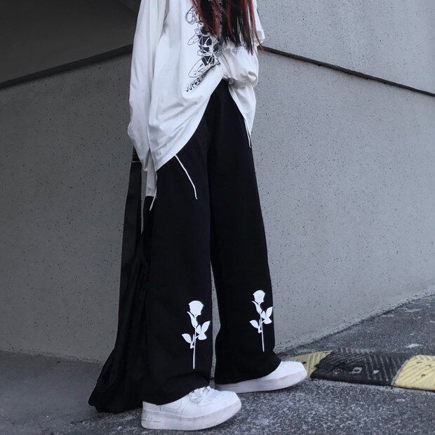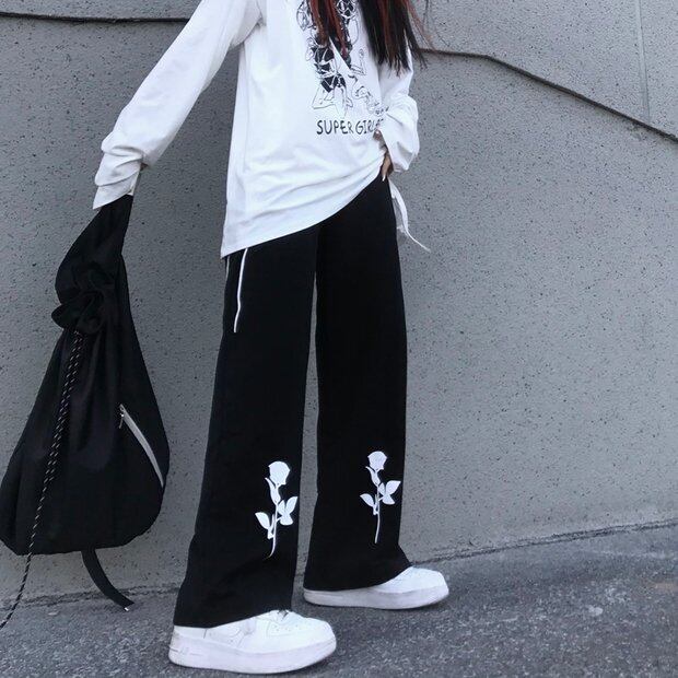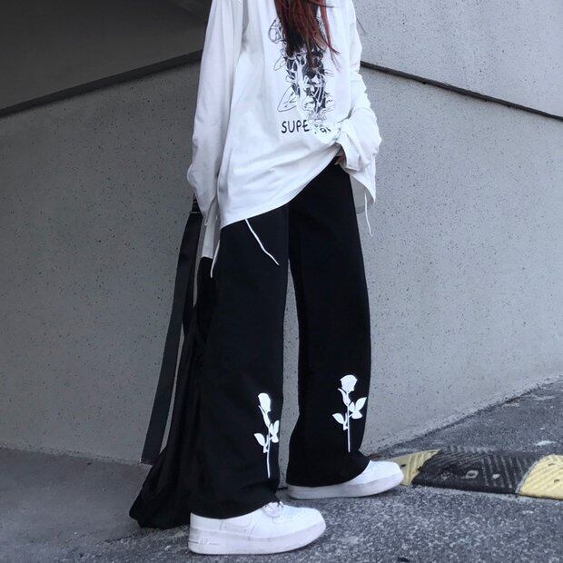 ブラックパンツ スタンダードワイドレッグルーズハイウェストウェストカジュアル レトロ ワイドパンツ Brother_is_Style94305977227