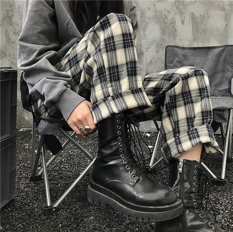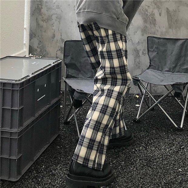 パンツ スタンダードカラー格子柄カジュアルルーズハイウェストウェスト薄手ワイドレッグ レトロ ワイドパンツ Brother_is_Style34018978883