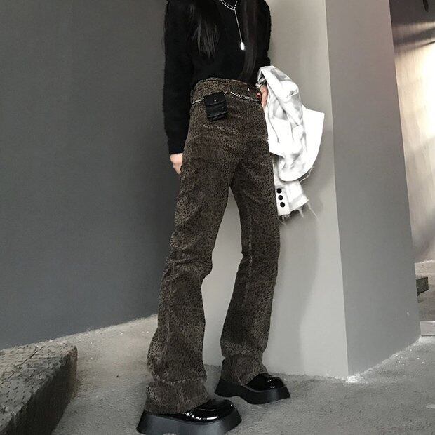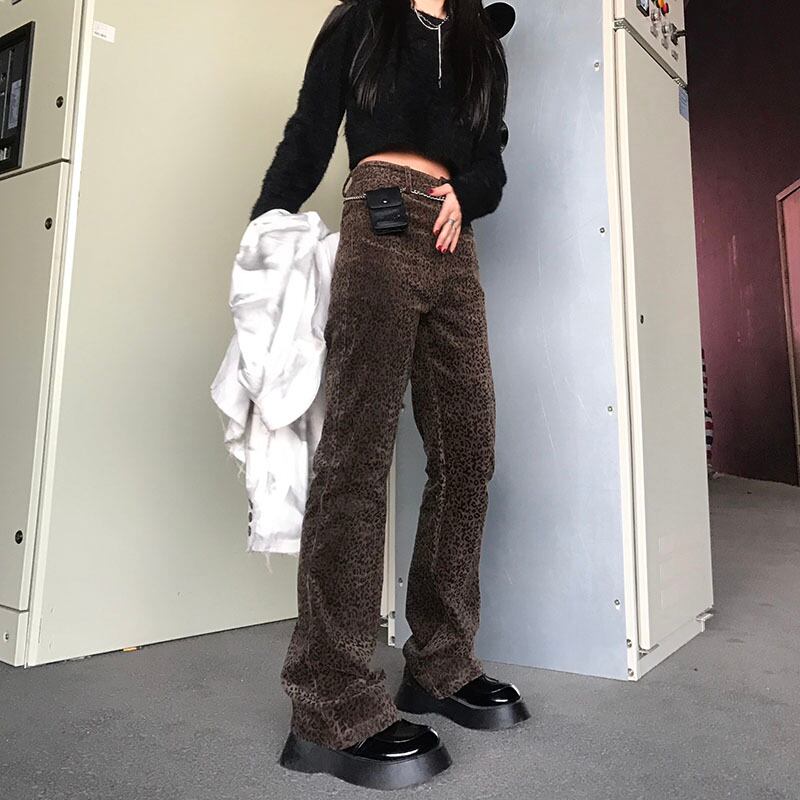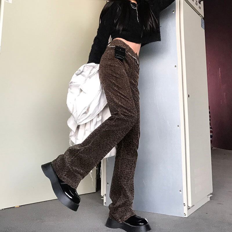 パンツ スタンダードレオパードプリント柄スリムハイウェストウェストカジュアル レッド レトロ Brother_is_Style81775615978