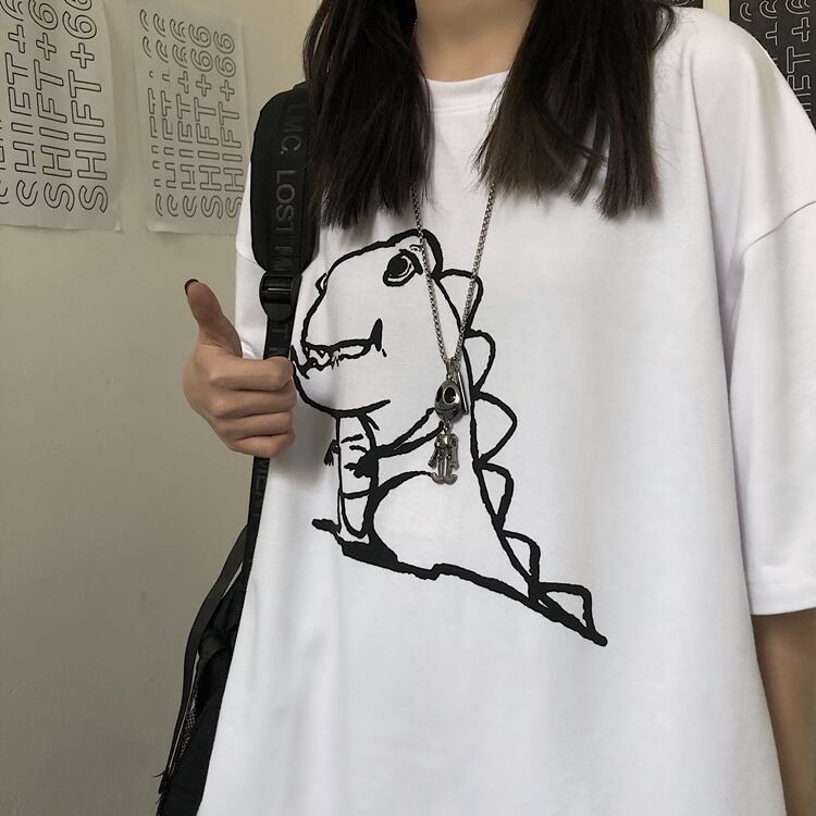 スプリングサマースタイルスタンダードプリント柄トップス ルーズホワイトTシャツ レトロ かわいい 春物 夏物 Brother_is_Style53268045980
