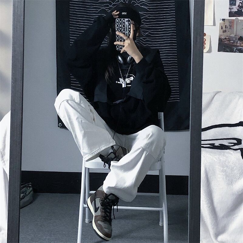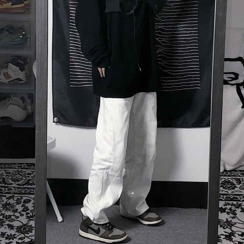 ホワイトパンツ スプリングオータムスタンダードハイウェストウェストジーンズ ルーズ薄手ワイドレッグ レトロ 春物 秋物 ワイドパンツ Brother_is_Style7473136163