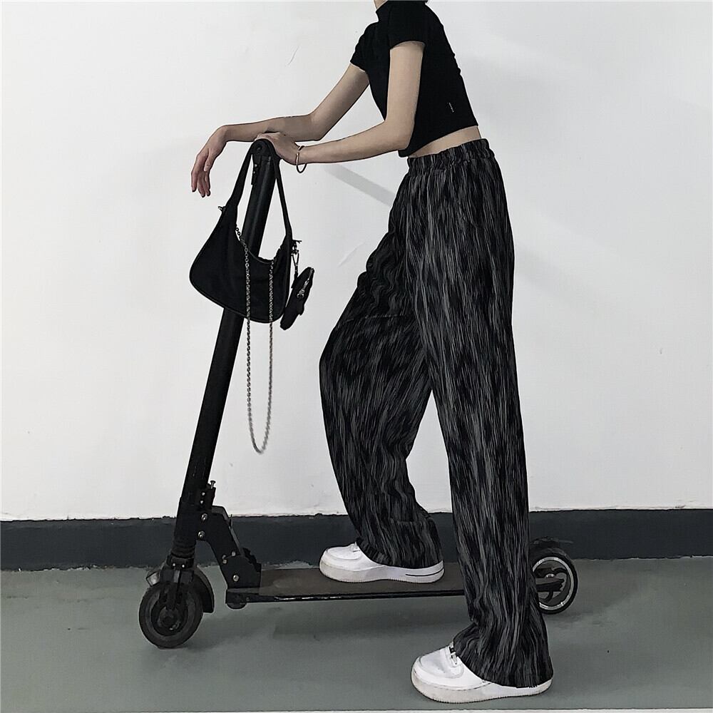 ワイドレッグパンツ サマーハイウェストウェストストライプ薄手ルーズカジュアル 夏物 ワイドパンツ Brother_is_Style97459316490