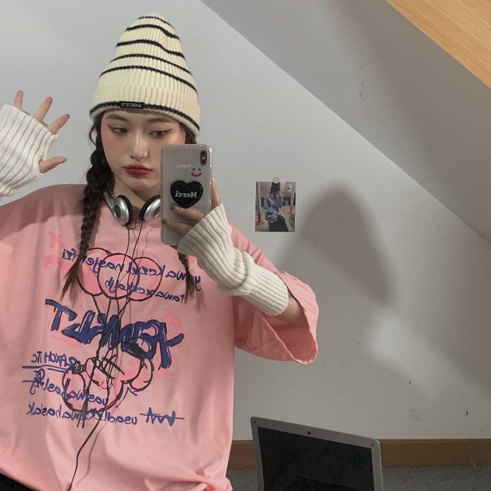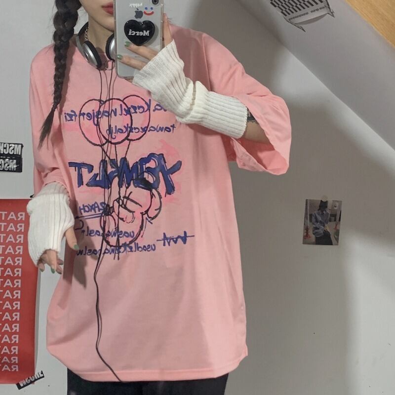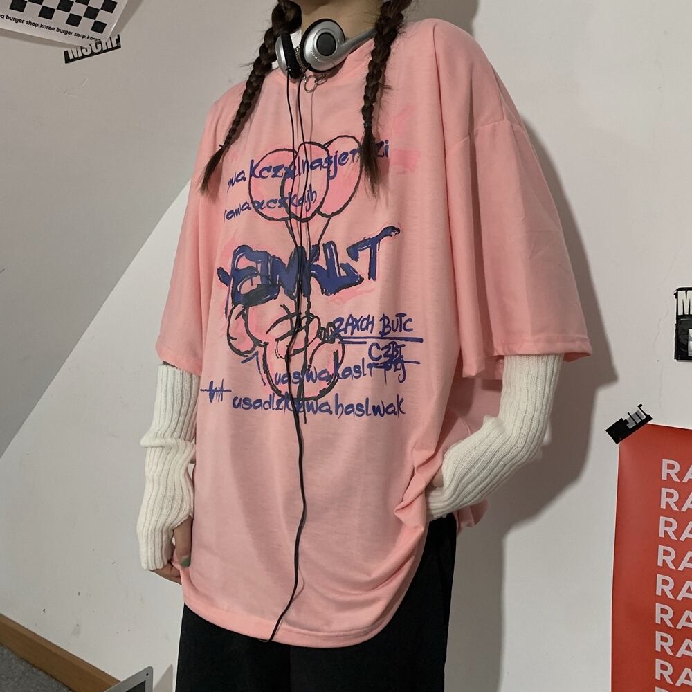 サマースタイルトップス ルーズTシャツ ピンク かわいい 夏物 Brother_is_Style87558283841