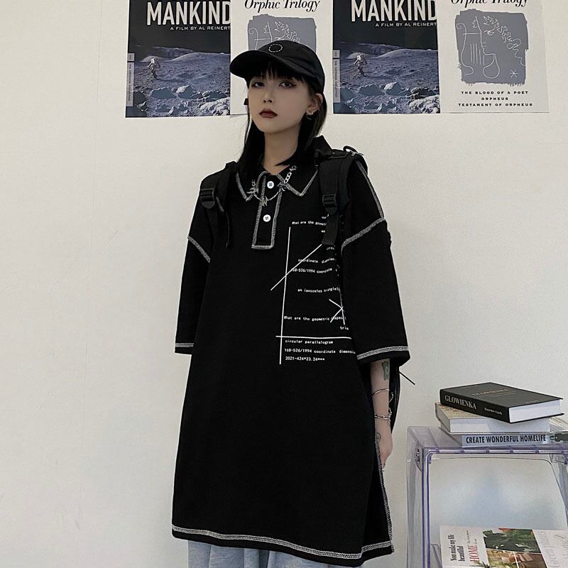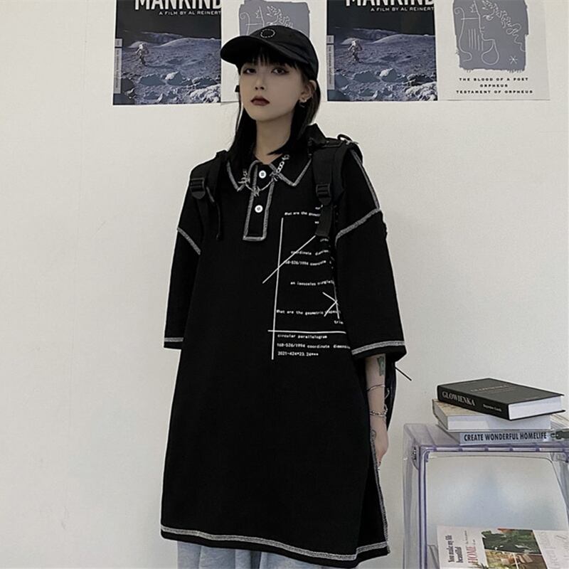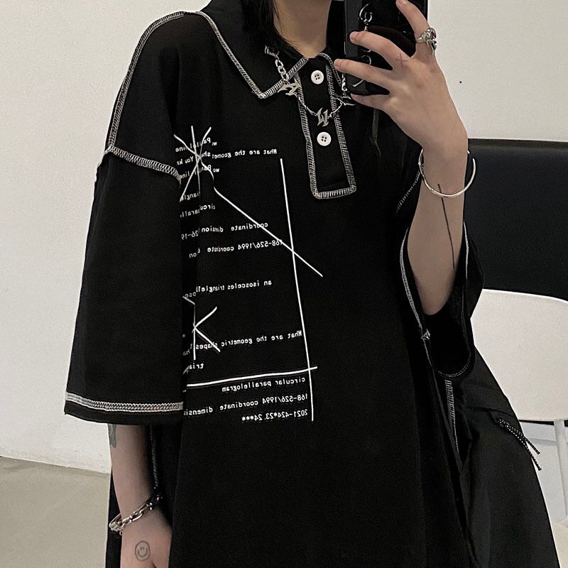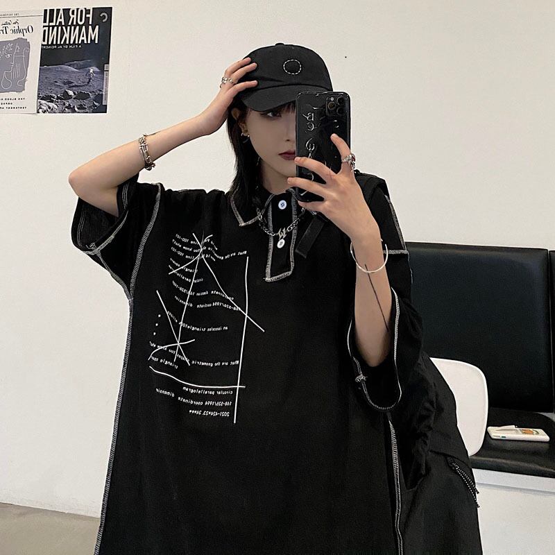 Tシャツ サマーラインブラックルーズカラートップス ストリート 夏物 Brother_is_Style44202549634