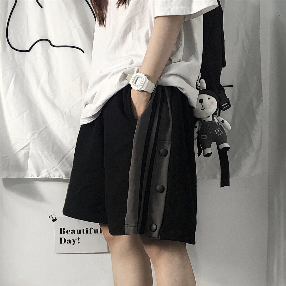 パンツ サマースタイルブラックカジュアルルーズショーツ かわいい 夏物 ブルマー Brother_is_Style204285370