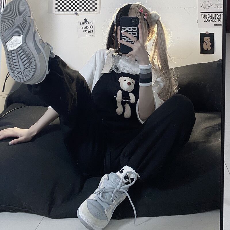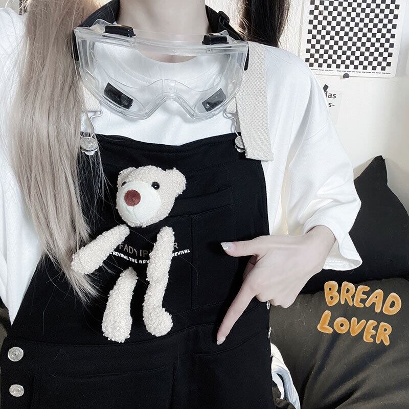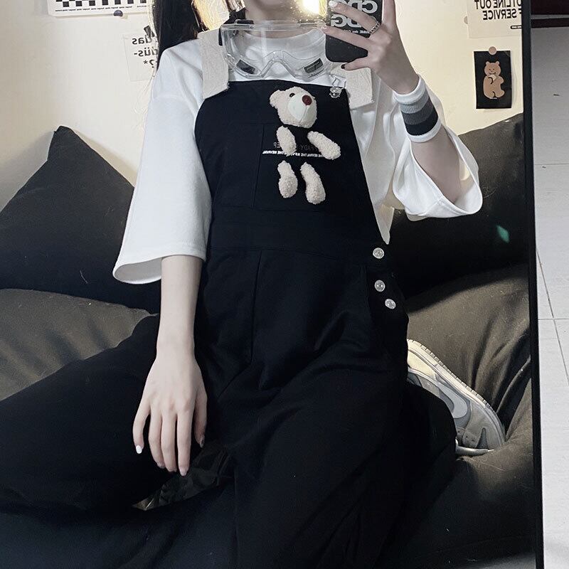 色:白いTシャツ,黒いオーバーオール