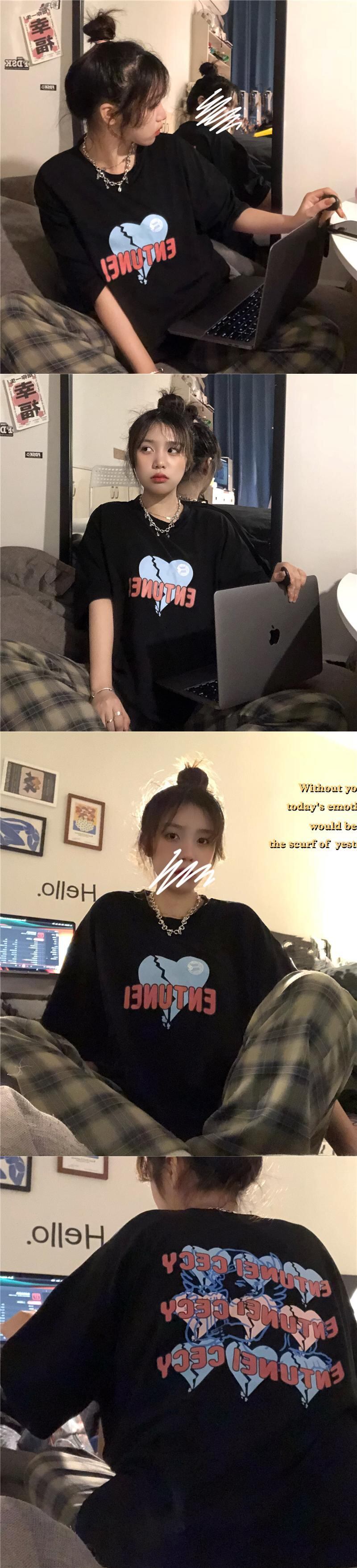 サマースタイルトップス ルーズブラックTシャツ かわいい 夏物 Brother_is_Style62842726408