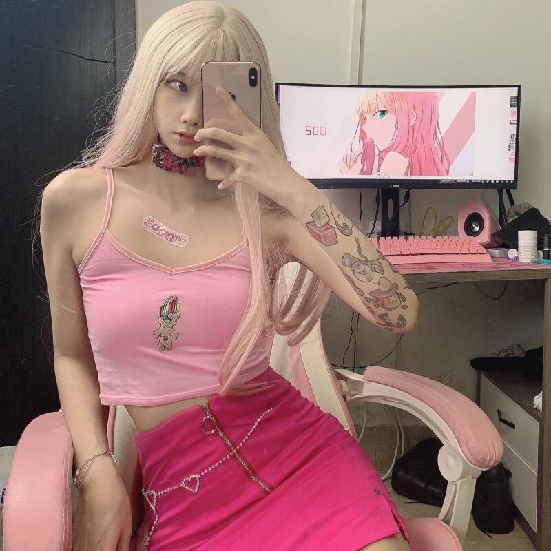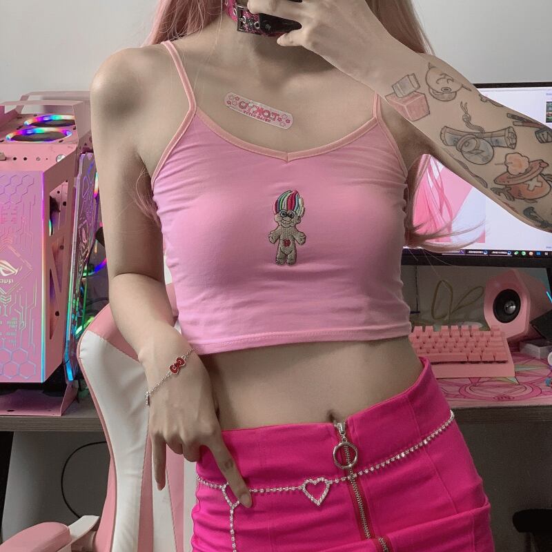 スタイルスリムノースリーブショートクロップトップ トップス ピンク かわいい Brother_is_Style25789561225