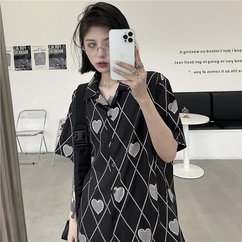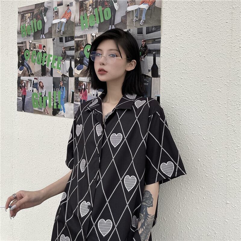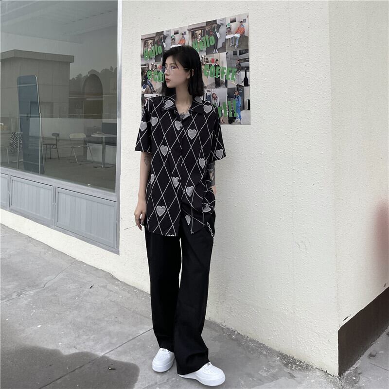 シャツ レディースサマースタイルプリントブラックルーズトップス かわいい 夏物 Brother_is_Style67899189904