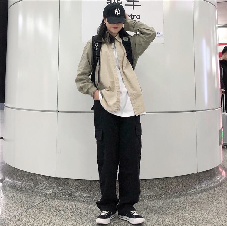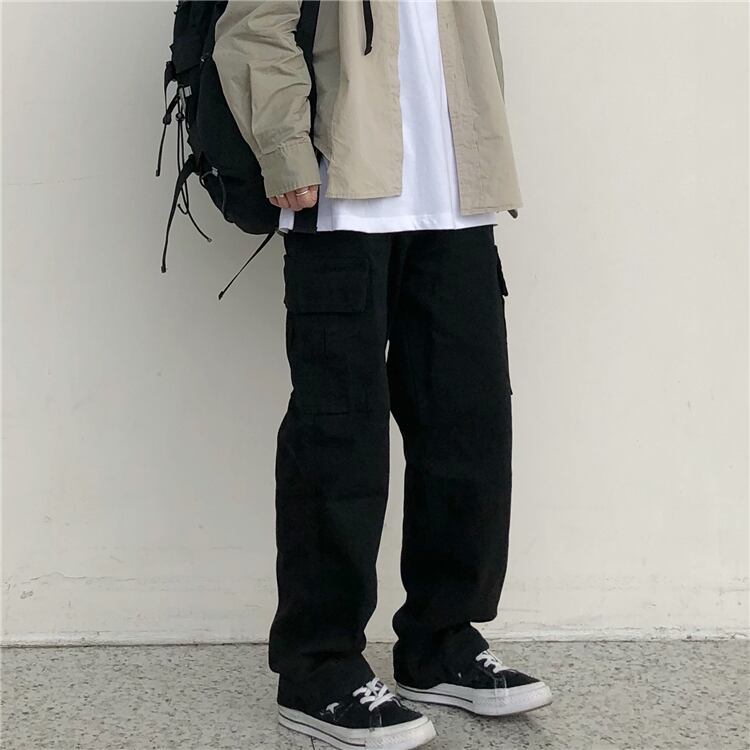 パンツ スプリングスタンダードブラックルーズハイウェストウェストワイドレッグカジュアル レトロ 春物 ワイドパンツ Brother_is_Style8259483658