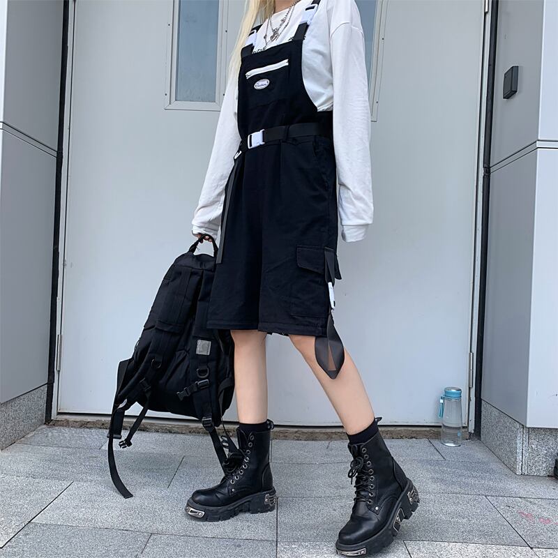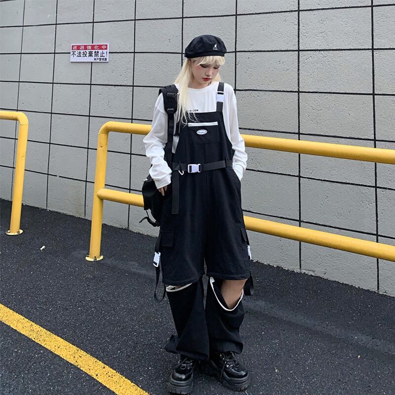 パンツ スプリングオーバーオール ショーツ ルーズハイウェストウェストワイドレッグジーンズ ストリート 春物 ブルマー ワイドパンツ Brother_is_Style7845445442