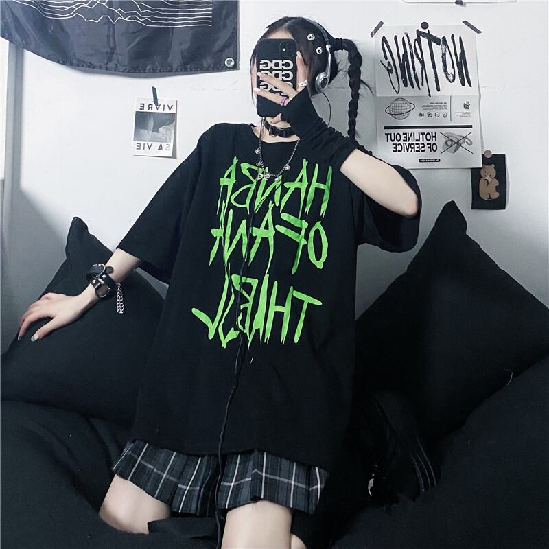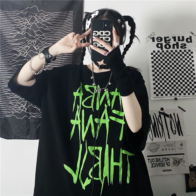 サマートップス ルーズブラックシャツ Tシャツ ストリート 夏物 Brother_is_Style55787821712