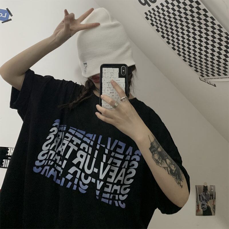 サマースタイルトップス ルーズブラックTシャツ かわいい 夏物 Brother_is_Style91647322224