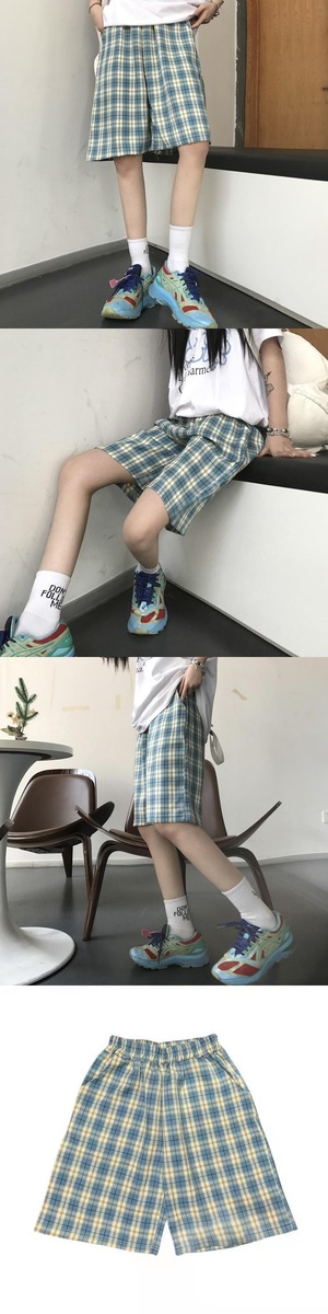 格子柄パンツ サマールーズ薄手ショーツ カジュアル ストリート 夏物 ブルマー Brother_is_Style37320099608