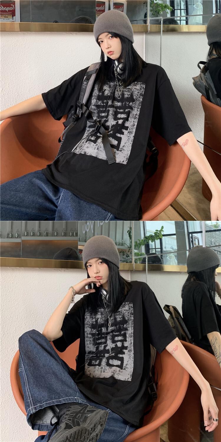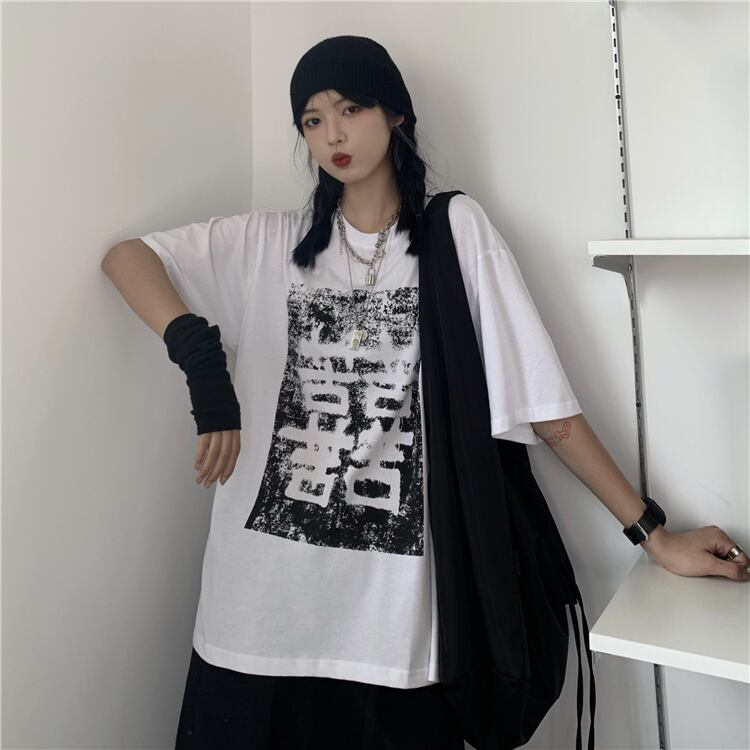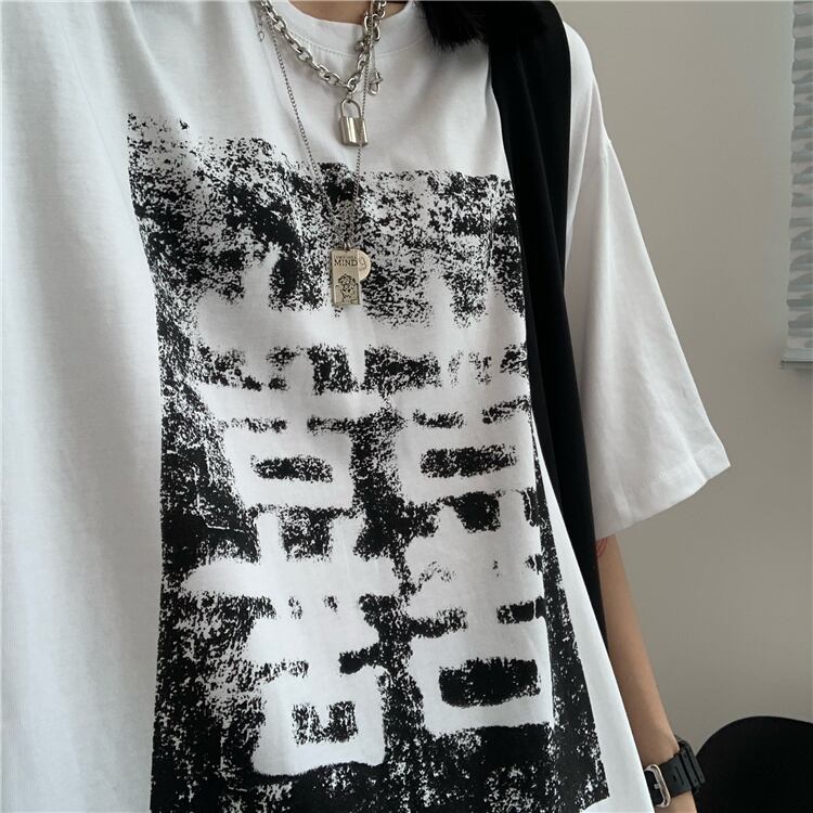 ホワイトTシャツ サマースタンダードプリントルーズトップス レトロ 夏物 Brother_is_Style40941188363