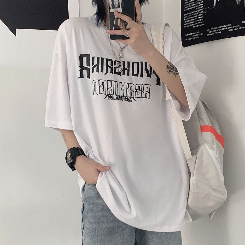 Tシャツ サマースタンダードプリントルーズホワイトトップス レトロ 夏物 Brother_is_Style95666405668