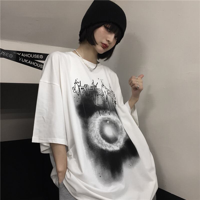 スプリングサマースタイルブラックトップス ルーズホワイトTシャツ かわいい 春物 夏物 Brother_is_Style53737726696