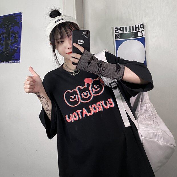 サマースタイルトップス ルーズブラックTシャツ かわいい 夏物 Brother_is_Style88559768393