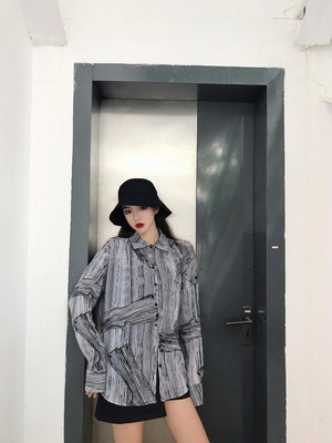 オータムスタイルルーズシフォンシャツ ジャケット スタンダード薄手レディース ロング レトロ 秋物 Brother_is_Style1026503