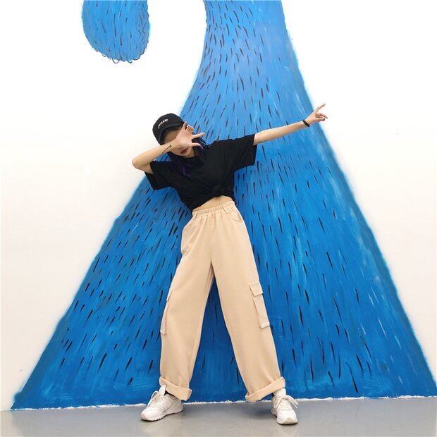 スタンダードハイウェストウェストルーズワイドレッグカジュアルパンツ オーバーオール レトロ ストリート ワイドパンツ Brother_is_Style7606946