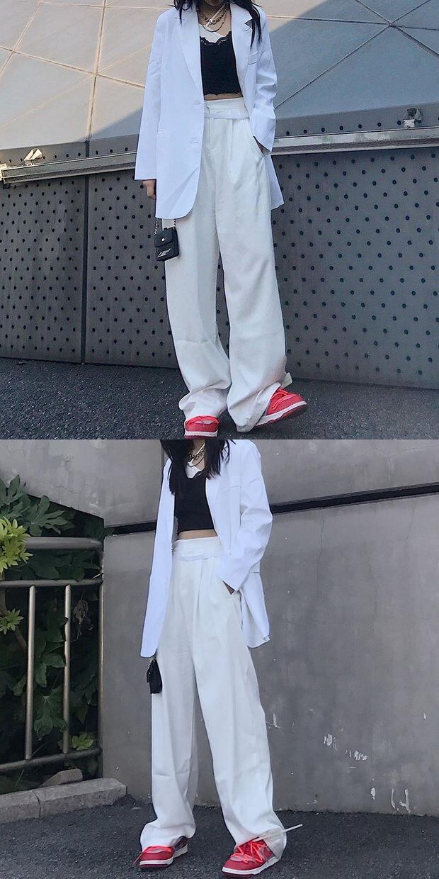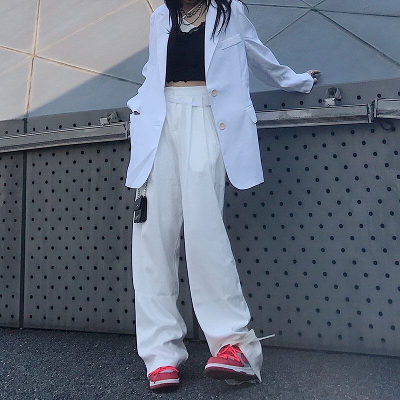 パンツ スプリングホワイトワイドレッグルーズハイウェストウェストカジュアル 春物 ワイドパンツ Brother_is_Style62475771937