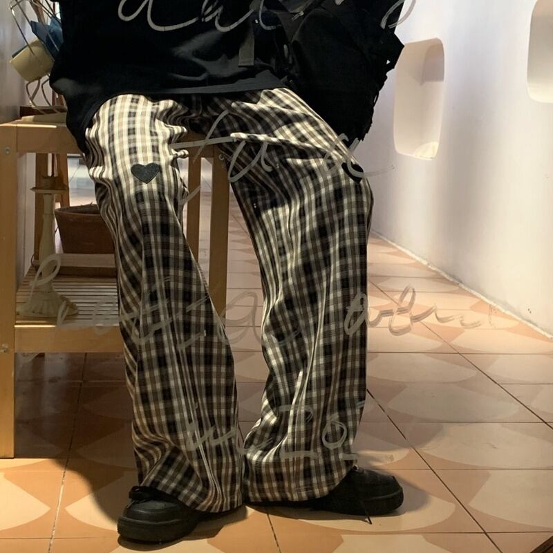 パンツ スプリングサマースタンダード刺繍ルーズハイウェスト格子柄カジュアル レトロ 春物 夏物 Brother_is_Style4977342242