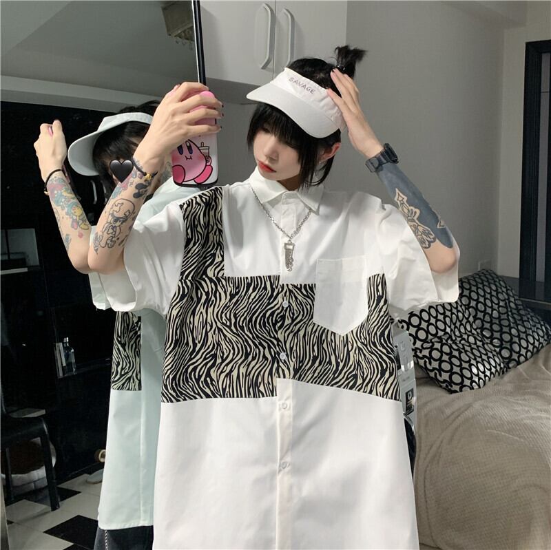 スリーブサマースタイルレオパードシャツ ルーズトップス かわいい 夏物 ステッチ Brother_is_Style4545833534
