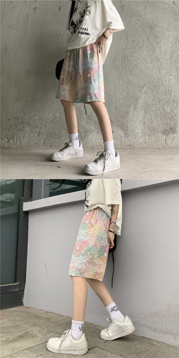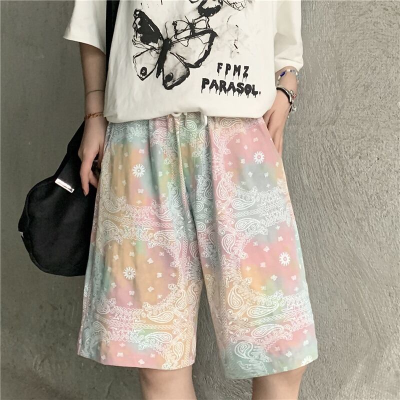 パンツ サマーFlowerデザイン カジュアルルーズハイウェストウェストワイドレッグショーツ 夏物 ブルマー ワイドパンツ フラワーデザイン Brother_is_Style30879999570