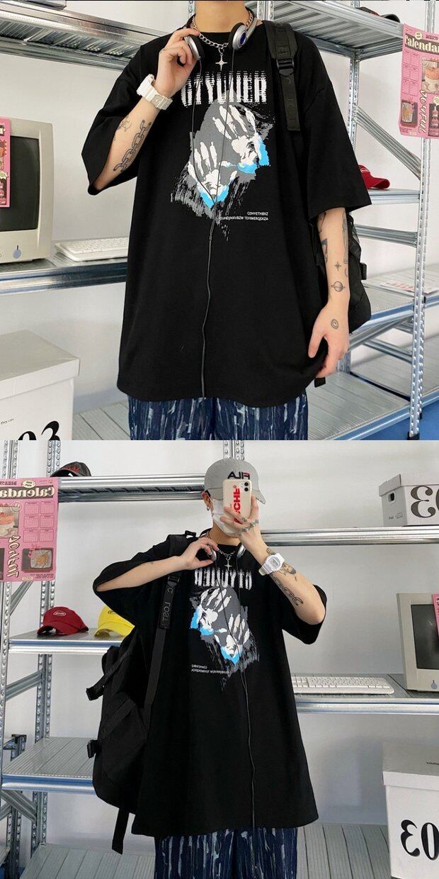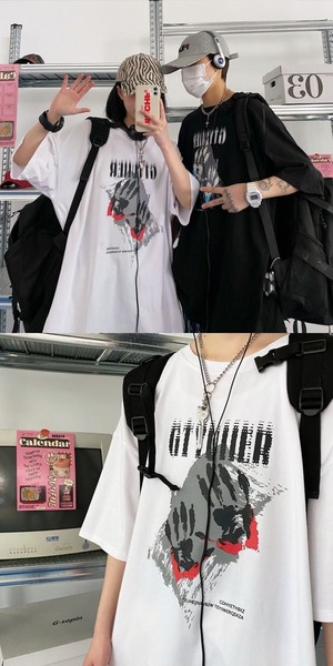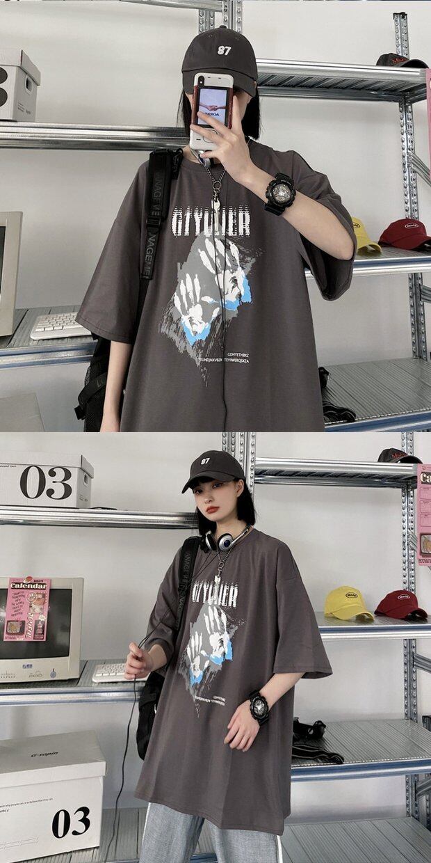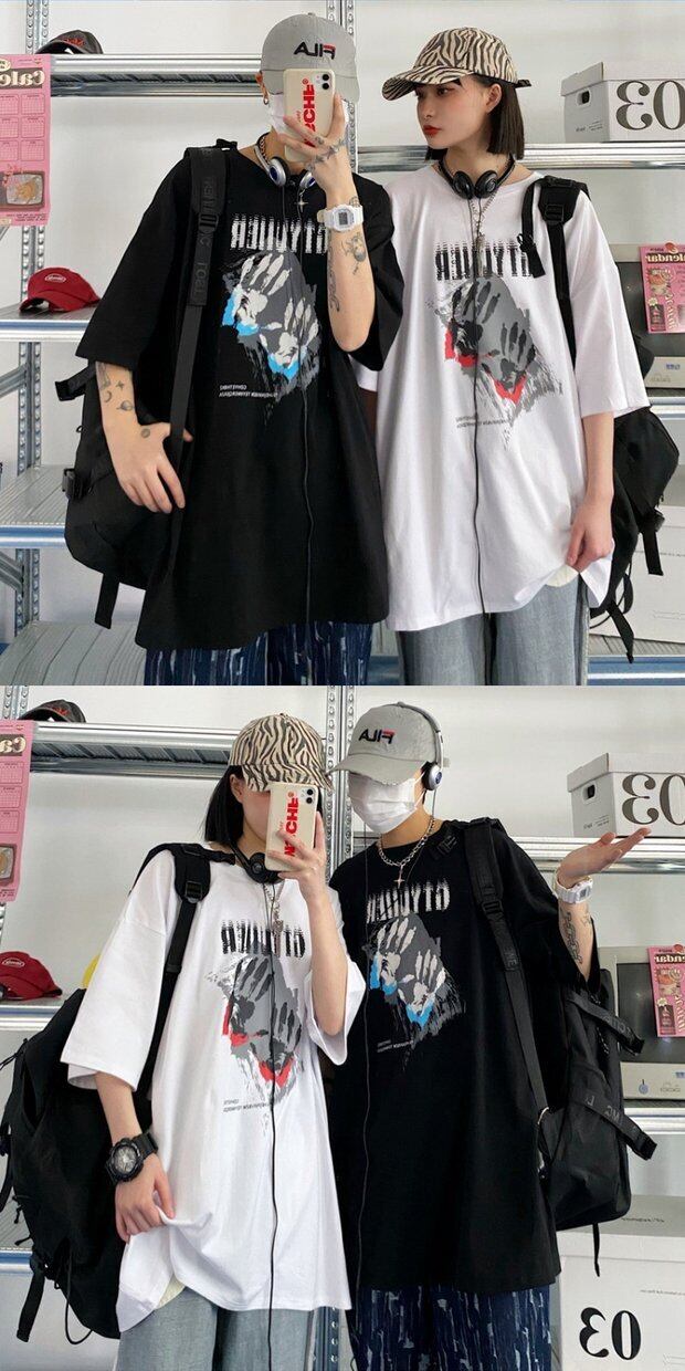 サマーダークトップス ルーズホワイトTシャツ 夏物 Brother_is_Style23600076525