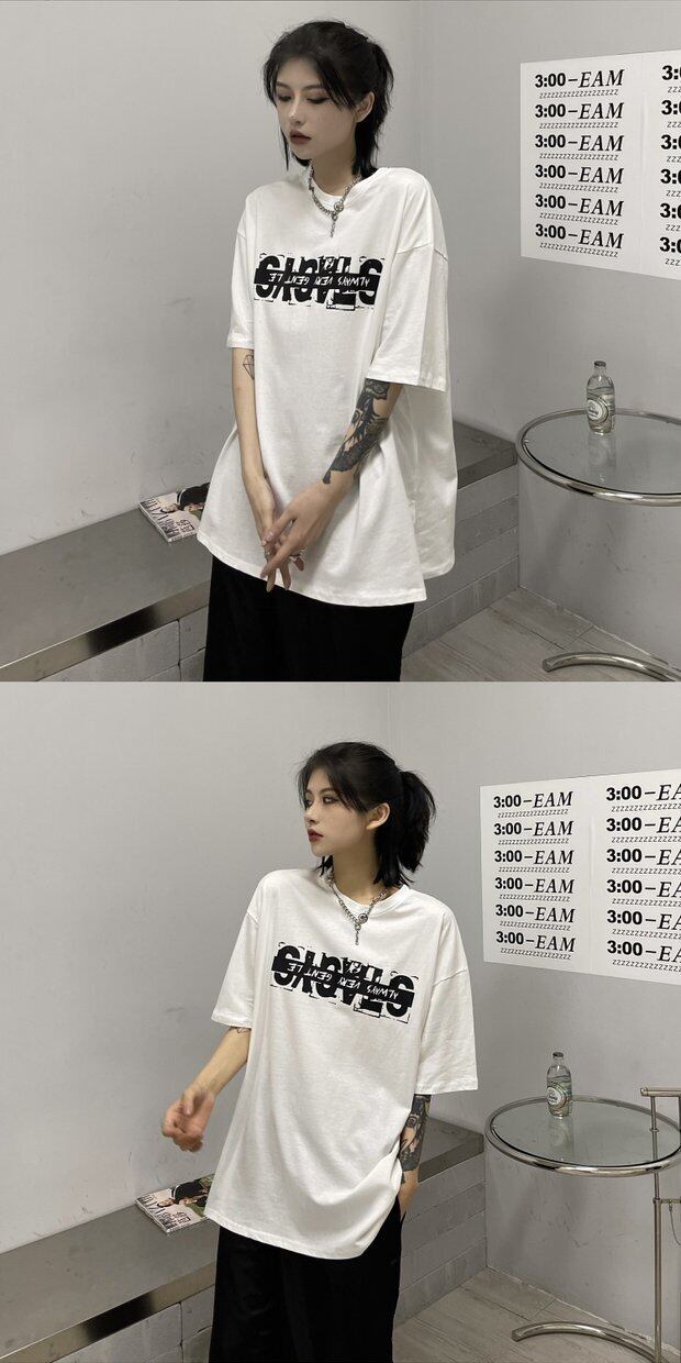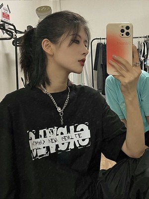 サマースタイルトップス ルーズブラックTシャツ かわいい 夏物 Brother_is_Style49763131554